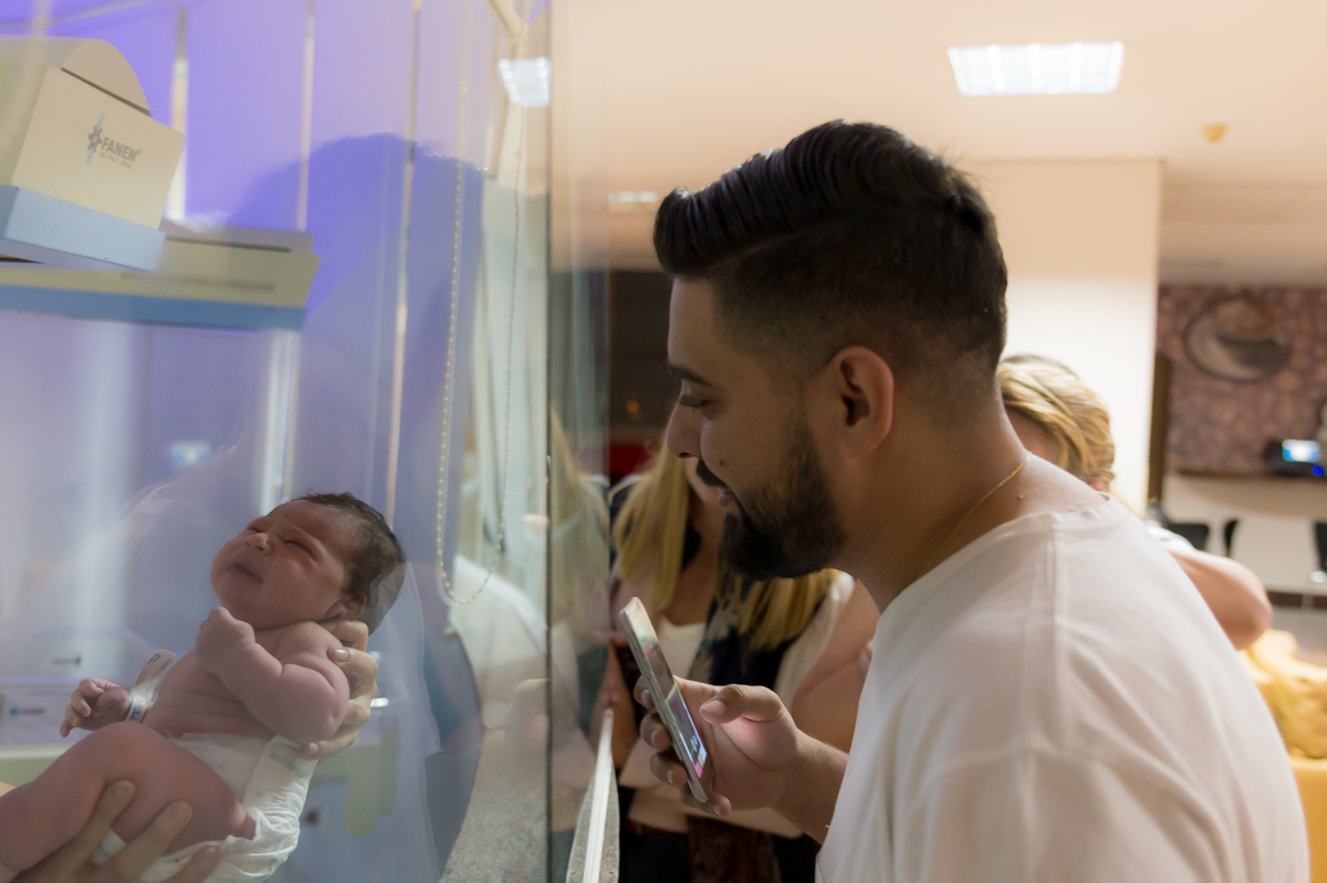 Esta maternidade não permitia a entrada de mais de um acompanhante, ou seja, ou entrava o pai ou a fotógrafa! Mas eles optaram pelo minha entrada, conversamos e o pai foi o primeiro a falar, pode entrar! (acho que ele seria um daqueles pais que desmaiaria ahahahah)!