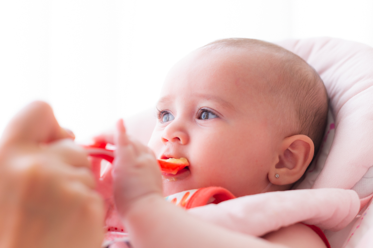 Rafinha chegando aos 06 meses e experimentando papinha de frutas!