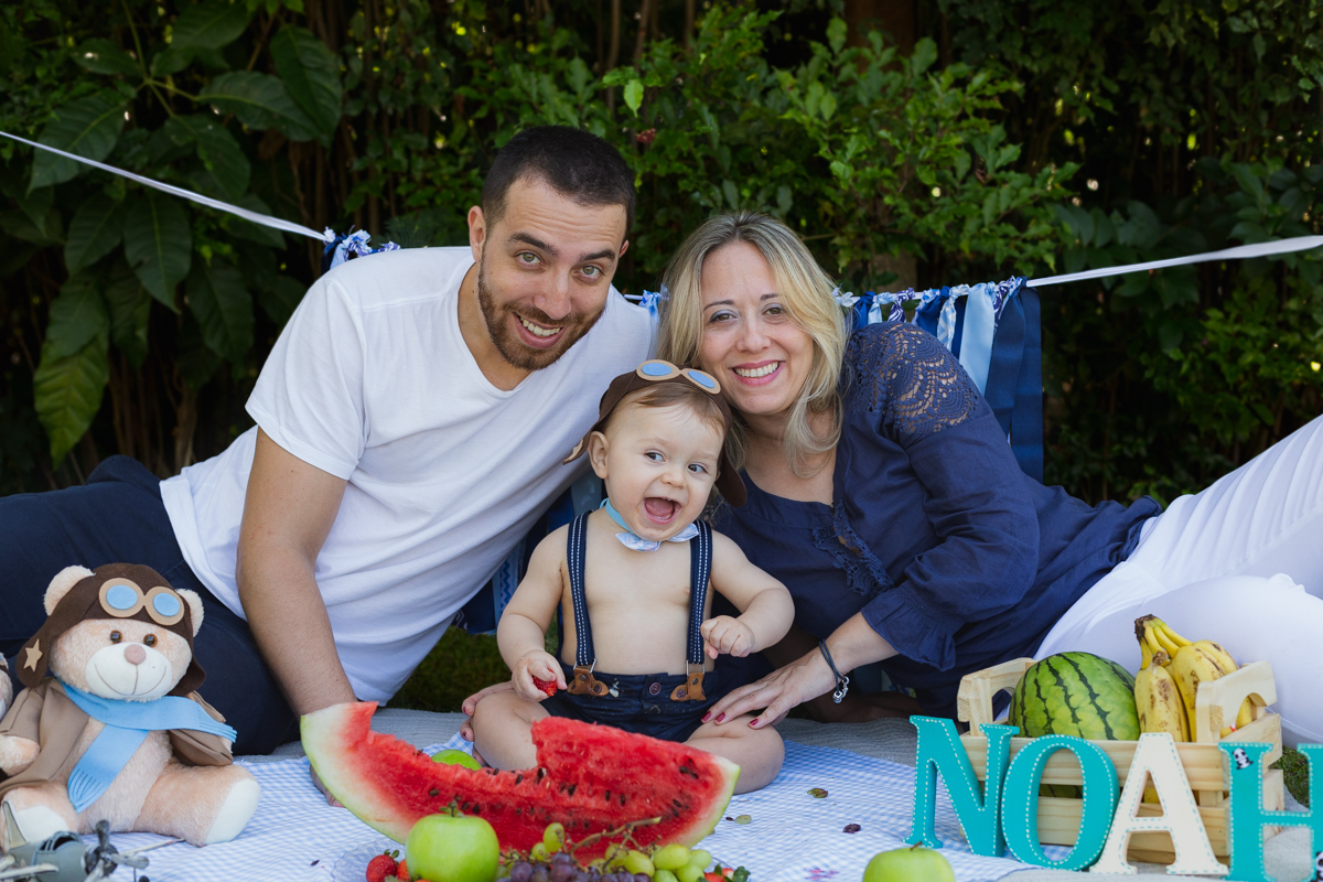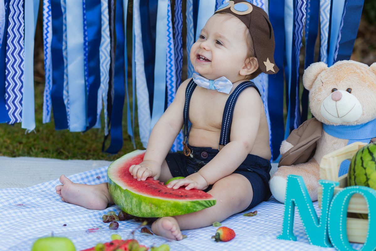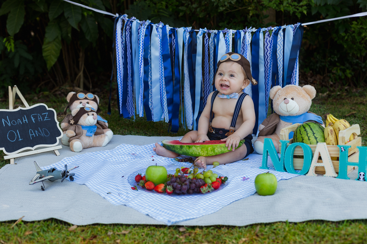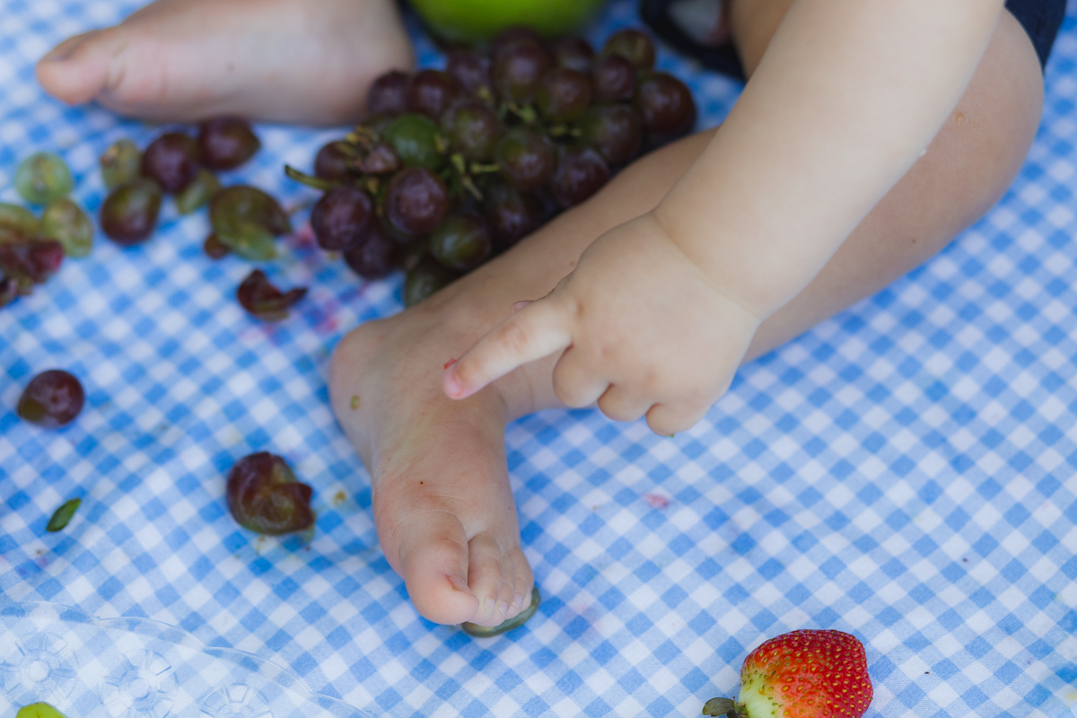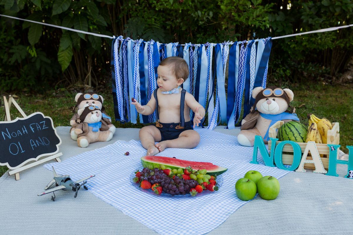 E o pequeno Noah se deliciou com seu ensaio recheado de frutas!