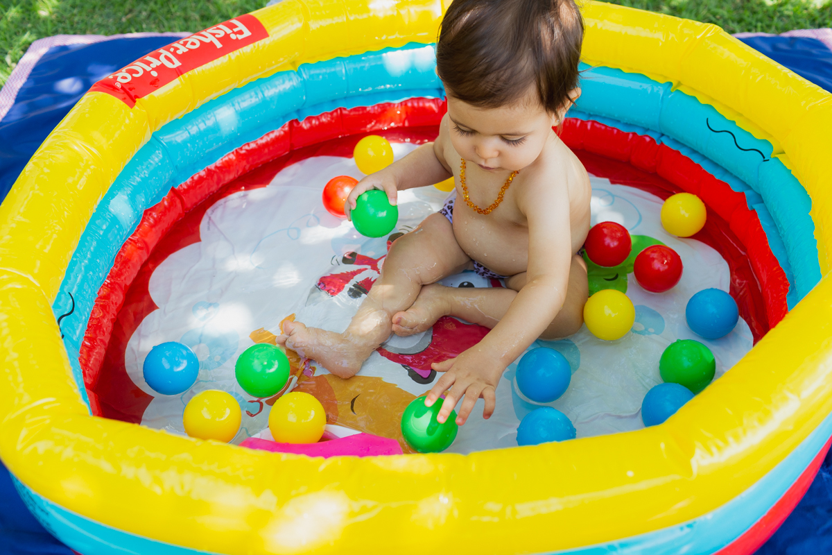 E no final como estava um dia muito quente colocamos a pequena na água e ela amou!